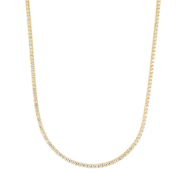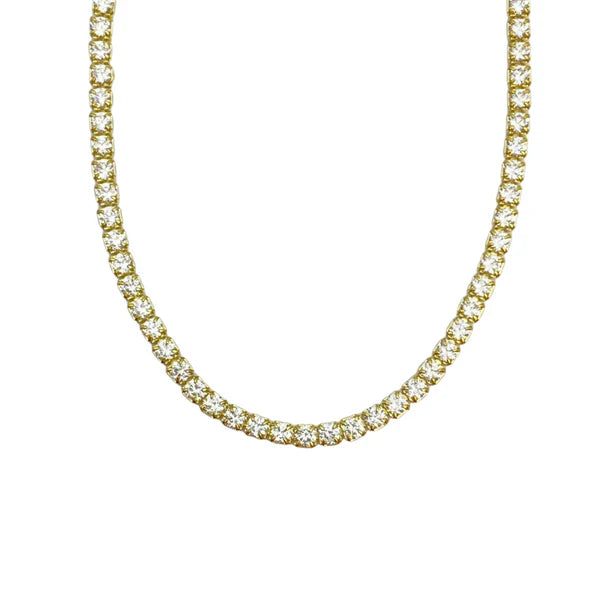 הוסיפו זוהר ועדינות למראה שלכם עם שרשרת טניס עדינה מצופה זהב והעניקו לעצמכם או למישהו אהוב תכשיט בלתי נשכח.